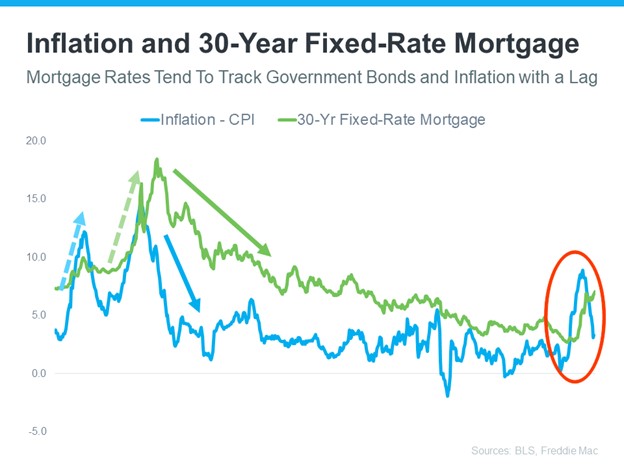 That’s important because it explains why the recent jump in rates might have you feeling sticker shock even though they’re close to their long-term average. While many buyers have adjusted to the elevated rates over the past year, a slightly lower rate would be a welcome sight. To determine if that’s a realistic possibility, it’s important to look at inflation.